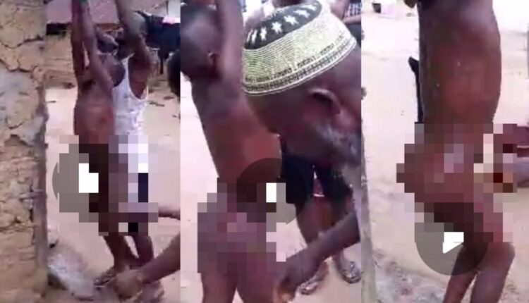 The video captured the child, a 12-year-old boy, completely naked and both wrists tied with a rope and hanged to the wooden bars of a roof.