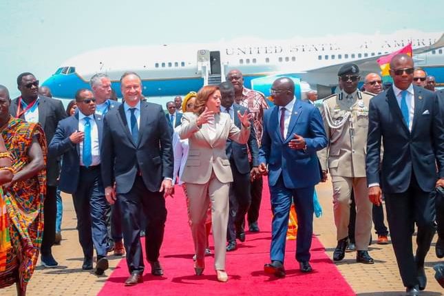 Moments after Kamala Harris touched down in Accra on Sunday she delivered an address right at the airport during which she said her visit is to strengthen the economic relations between the US and Ghana.