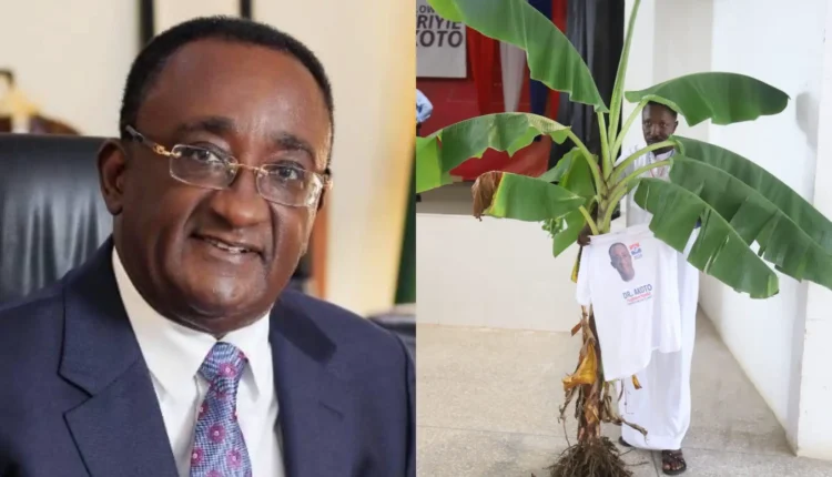 Dr. Owusu Afriyie Akoto has been travelling with a plantain tree on his ATOPA campaign to show delegates of the party his enviable exploits for which he deserves to be the party’s flag-bearer.