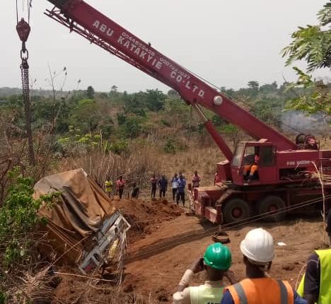 According to the police, all other stakeholders worked collectively before the truck was eventually removed from the deep valley located at the roadside.