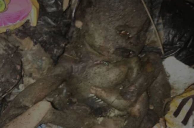 Some residents of the peaceful community were dumping garbage at the refuse dump site on Friday when one of them spotted the lifeless body of the decomposed baby.
