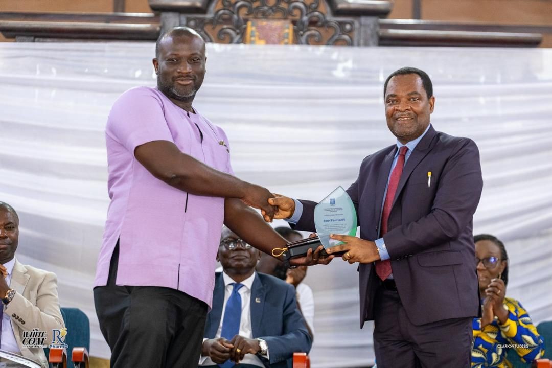 Dr Adjepong received the award from Professor Alfred Edwin Yawse, Provost of the College of Health Sciences. The ceremony concluded with applause, celebrating PharmaTrust Pharmacy’s role in shaping the future of pharmacy in Ghana.