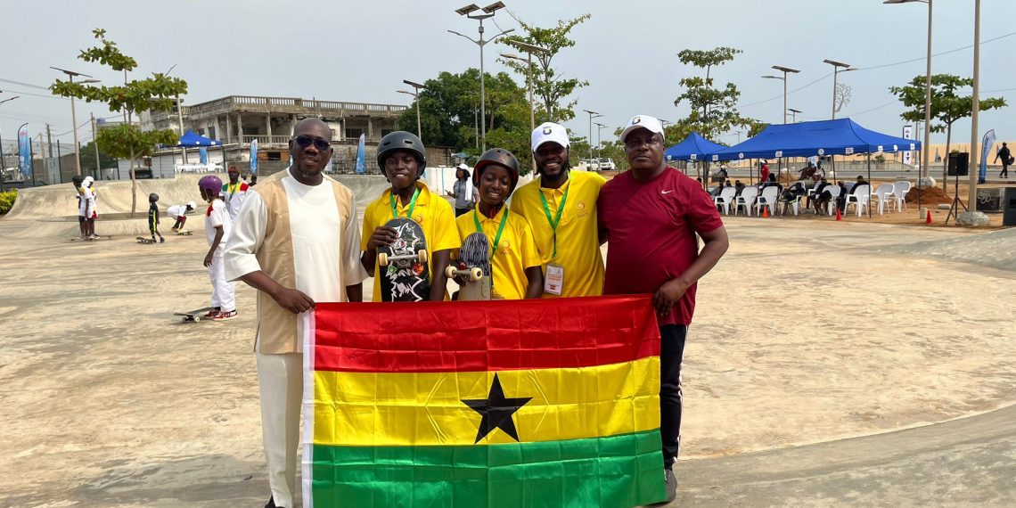 Ghana’s delegation, led by Mr. Johnson Kwaku Gameli Kportufe, President of Ghana Skate, alongside Mr. Prosper Ashiquaye Doku, the General Secretary; Mr. Joshua Odamtten, Commission Chairman for Skateboarding in Ghana with athletes Cornelius and Tracy who are eyeing for a podium finish.