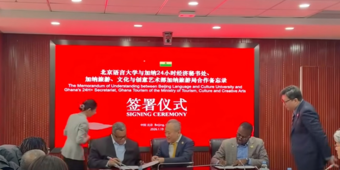 Through the initiative of the Minister of Tourism, Culture, and Creative Arts, Abla Dzifa Gomashie, a Memorandum of Understanding (MoU) was signed at the Beijing Language and Culture University to deepen bilateral cooperation in Tourism, Arts, Culture, Festivals, Film, Music, and Culinary Heritage.