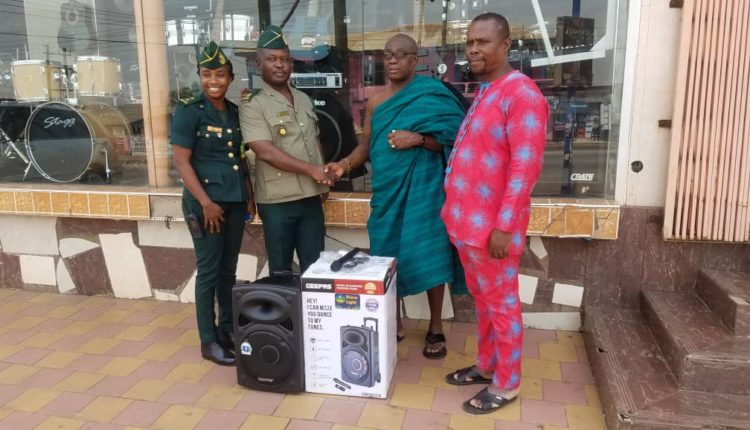 The Chief of Dominase Memi in the Ankasi Kwabre, Nana Kofi Gyasi Ababio owner of Noble Kings Musical Instruments has presented public address system equipment to the Ashanti Regional Command of the Ghana Immigration Service in Kumasi.