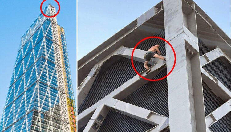 Bystanders filmed the man as he clambered up the Leadenhall Building – commonly known as the “Cheesegrater” – on Friday morning.
