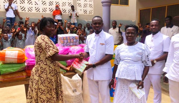A renowned Ghanaian entrepreneur, Mr. Amo Collins CEO of Aduro Y3 Herbal Center, producers of Obuasi Bitters last Saturday donated assorted items worth GHȼ 8,000 and a cash amount of GHȼ 5,000 to Research Utilization School for the Deaf at Ahansonyewodea a suburb of Obuasi East District in the Ashanti Region to mark his 33rd birthday celebration.