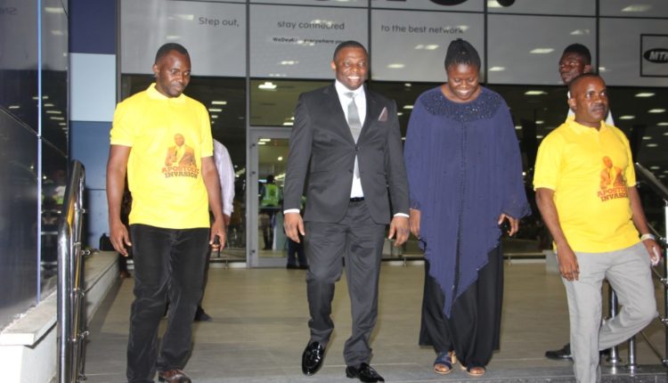 Pastor Johnmark who has been in the country Sunday evening was welcomed at the Kotoka International Airport by Prophet Napoleon Nikabou, head pastor of the Word of Life International Church and other high ranking officers of the church.