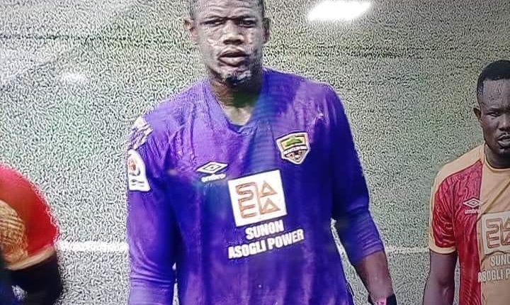 The 25 year old shot stopper’s look struck a familiar tone to former Hearts of Oak winger Patrick Razak who spotted a similar look in a game in the 2021-2022 season.