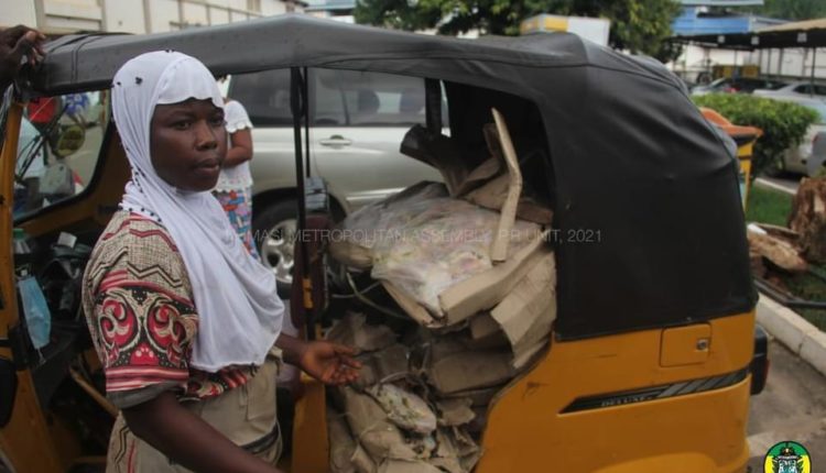 The security guard then saw one Abiba, who was in possession of quantities of big brown boxes, which were packed in the back seat of a tricycle also known as ‘Pragia’.