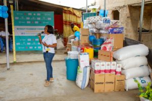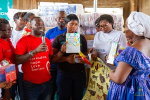Items donated included bags of rice, bags of gari, bags of corn dough and cassava dough, cartons of milk, packs of bottled water, and packs of soft drinks, among others.